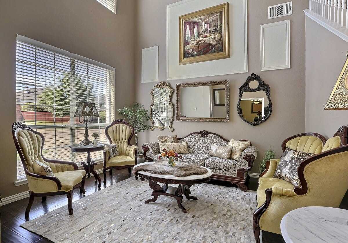 Если у вас главная цель – подчеркнуть наличие красивых вещиц, то просто окрасьте стены в белый цвет, а на пол постелите обычный, деревянный пол.