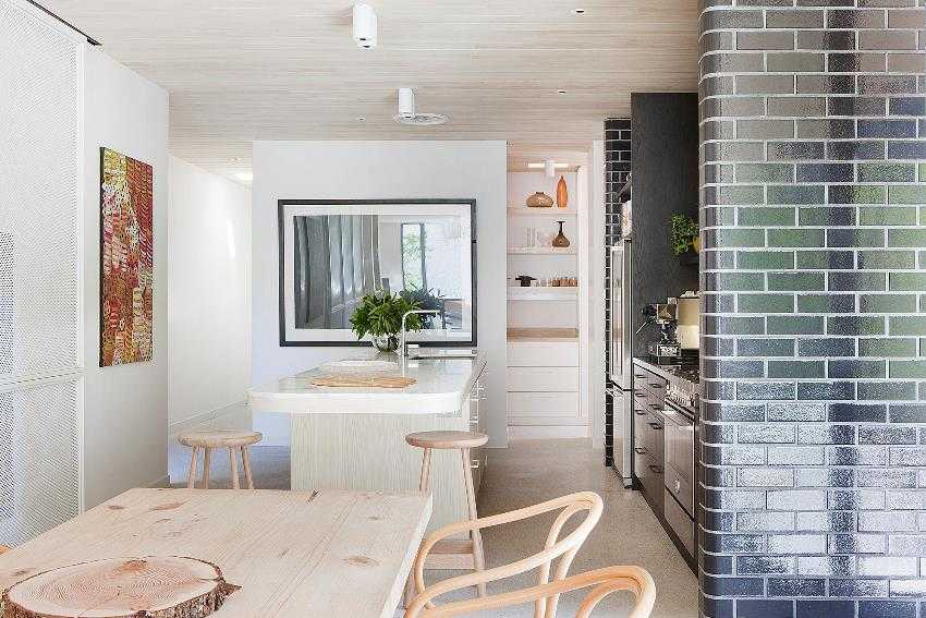 Впрочем, глянцевые глазурированные кирпичики тоже смотрятся очень интересно. К тому же, за счет отражающих свойств они визуально делают маленькую кухню больше. Весомый бонус, особенно если учесть, что сам по себе кирпич скрадывает пространство, делает его меньше и теснее.