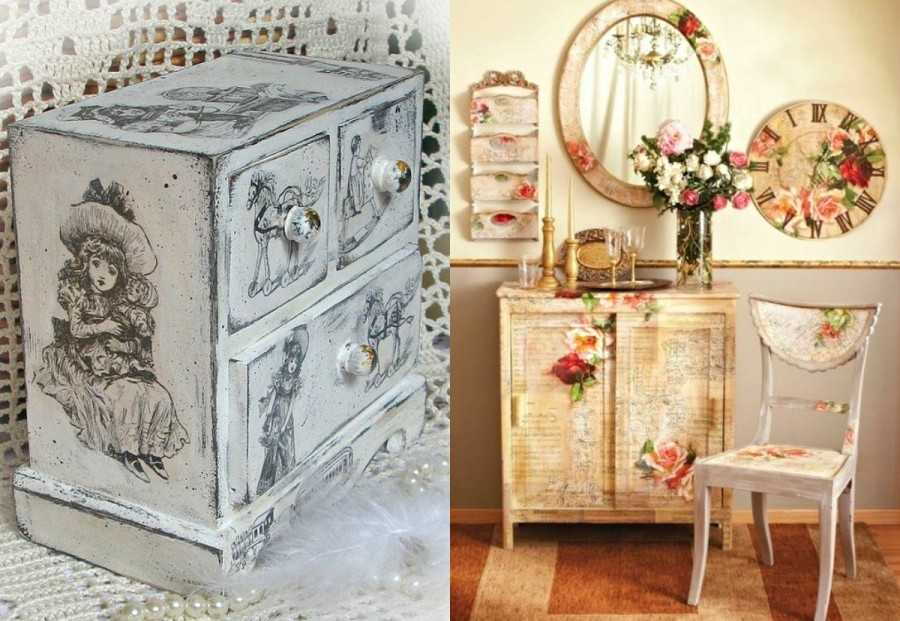 Украшение таким методом может стать спасителем для старой мебели, которая многие годы украшала дом.