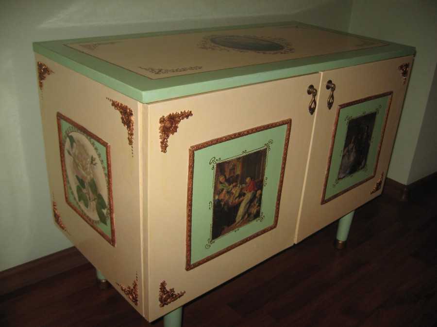 Посмотрите на фото декупажа мебели, любой из предметов на снимках достоин украшать квартиру или дом.