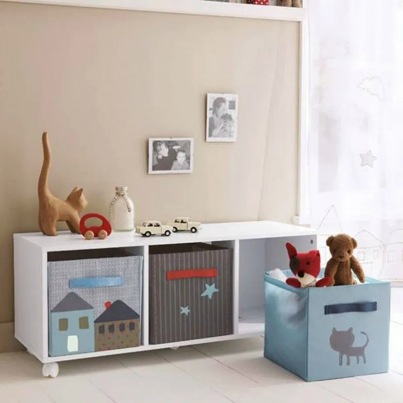 В этом возрасте игрушки еще остаются важной частью для вашего малыша. Приучать к чистоте и порядку тоже нужно с детства, поэтому для игрушек лучше установить удобные полки или корзины для хранения