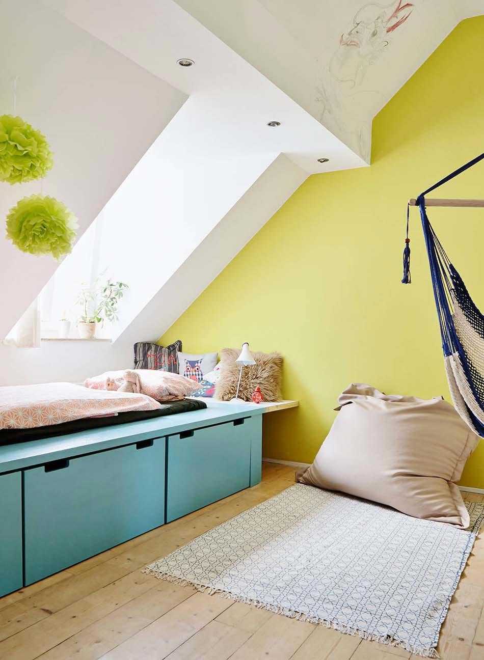 Яркие предметы обстановки и декора помогут придать общему виду красок и лаконичности. Многофункциональная мебель (кровать-чердак, уголок школьника и т. д.) сохранит свободное пространство.