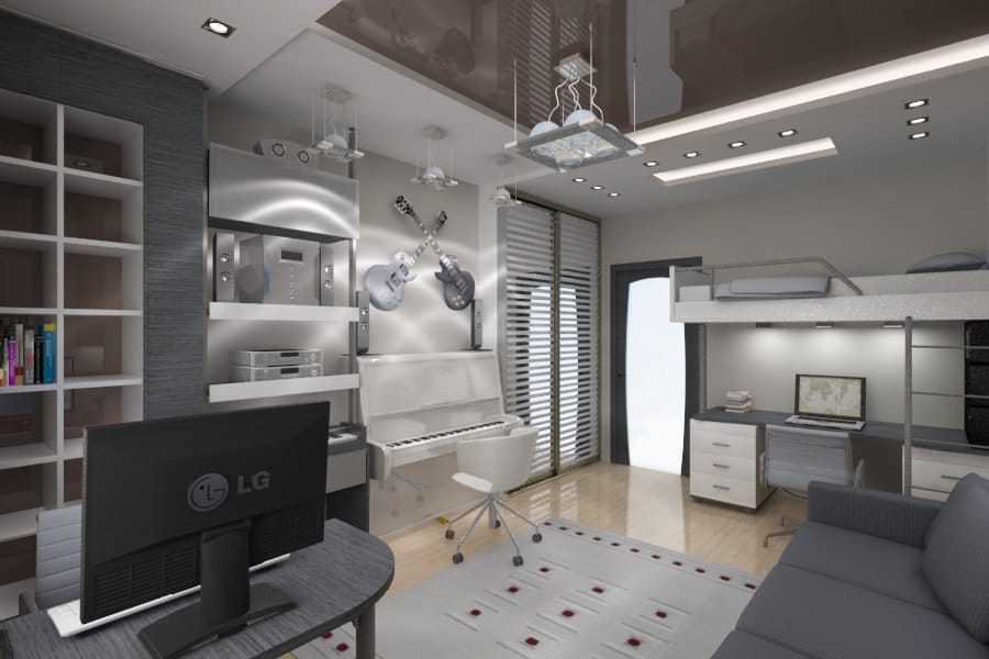 Часть комнаты подроста стоит оборудовать в соответствии с его талантами и интересами, например, установив там пианино, спортивный уголок, мольберт с красками. Фото дизайна детской комнаты для мальчика-подростка можно увидеть ниже.