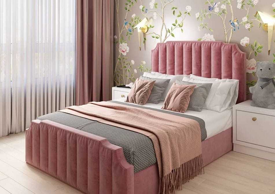 В девичьей комнате рекомендуют использовать натуральные хлопковые или шелковые ткани. Кровать и другие предметы должны отличаться красивыми и плавными изгибами. Для девочек постарше можно выбирать варианты кровати с художественной резьбой на изголовье. Всегда актуально смотрится кованое изголовье.