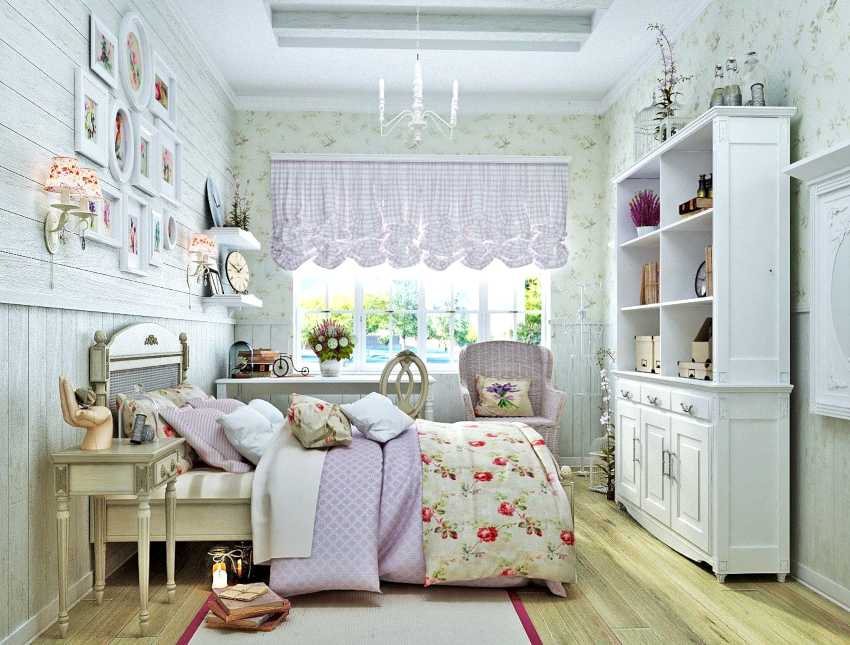 Прованс нередко выбирают для оформления комнаты девушки 13-16 лет. В основе здесь лежит пастельная гамма с белым фоном, цветочные узоры и витиеватый элегантный декор. Такой интерьер подойдет девушке романтичной, мечтательной, с хорошим воображением.