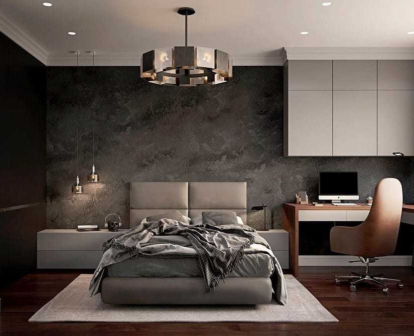 Здесь неуместны обои в цветочек, гораздо более актуальна кирпичная кладка, отделка стен «под бетон», монохромные оттенки. Акценты присутствуют, но они умеренные – это может быть текстиль или фотообои контрастных приглушенных оттенков.