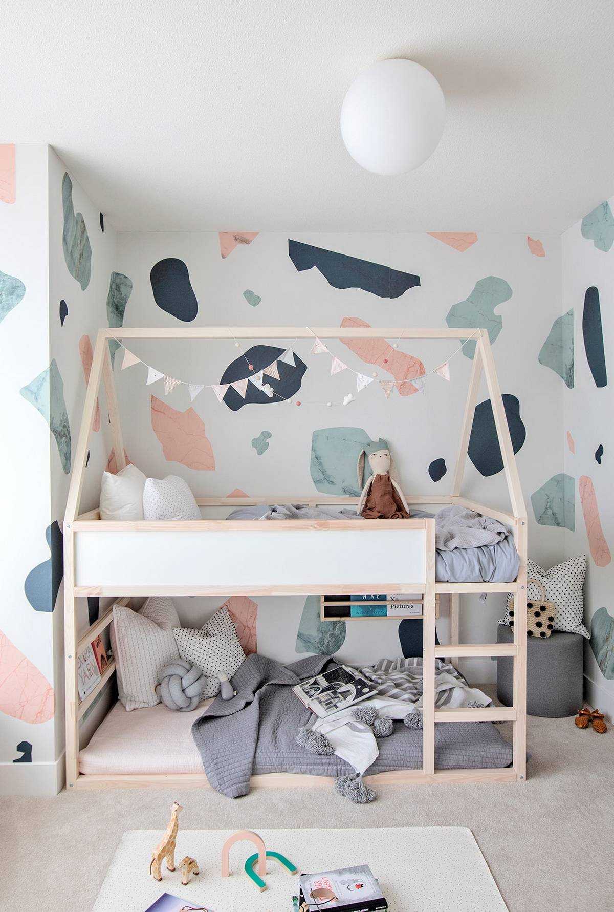 Если детская, которую украшают светлые обои, имеет низкие потолки, то для нее неподходящим решением будут двухъярусные кровати. Во время сна или отдыха детям будет душно.