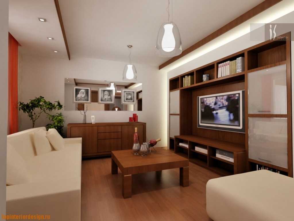 Оформление помещения не должно диссонировать с общим решением квартиры. Также необходимо учитывать предпочтения всех членов семьи. Площадь зала тоже может повлиять на решение по выбору стиля.