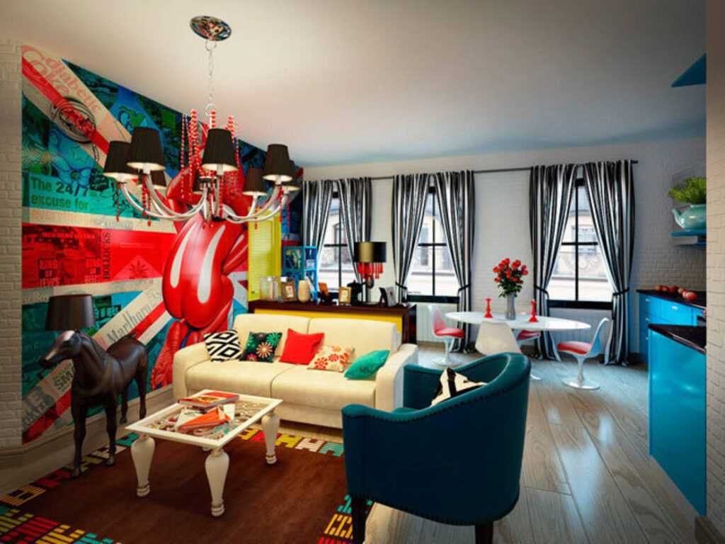 Современный стиль может сочетать в себе черты минимализма, кантри и даже некоторые элементы классики. Не менее популярно оформление квартиры в стиле поп-арт, который предлагает колоритные сочетания, необычные и сочные миксы.