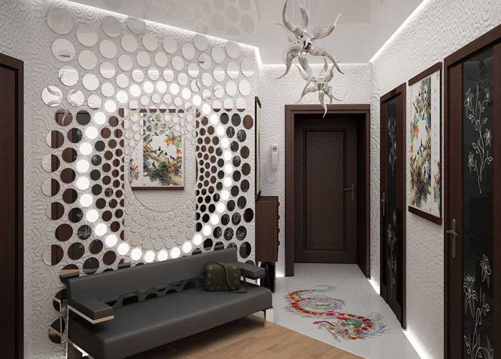 При оформлении интерьера следует использовать как можно меньше современных самодельных материалов. Хэнд-мэйд сейчас не в моде, особенно это касается светильников, подушек и пледов. Лучше использовать более современные покупные изделия, отказываясь от безделушек. Дизайнеры рекомендуют установить как можно больше стеклянных и зеркальных поверхностей, создавая зеркальные инсталляции.