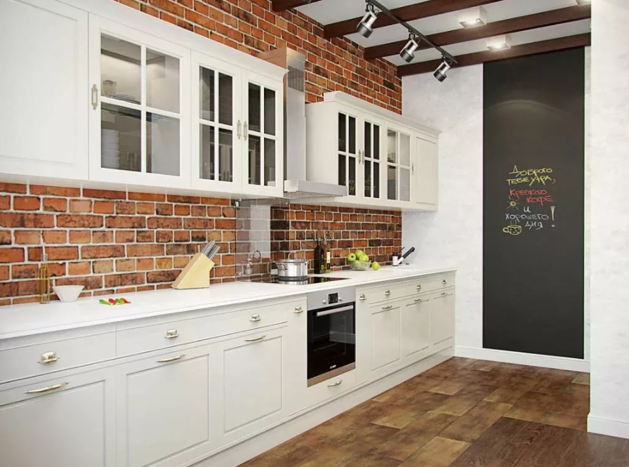 Модные кухонные материалы — дерево, бетон, кирпич, камень, стекло