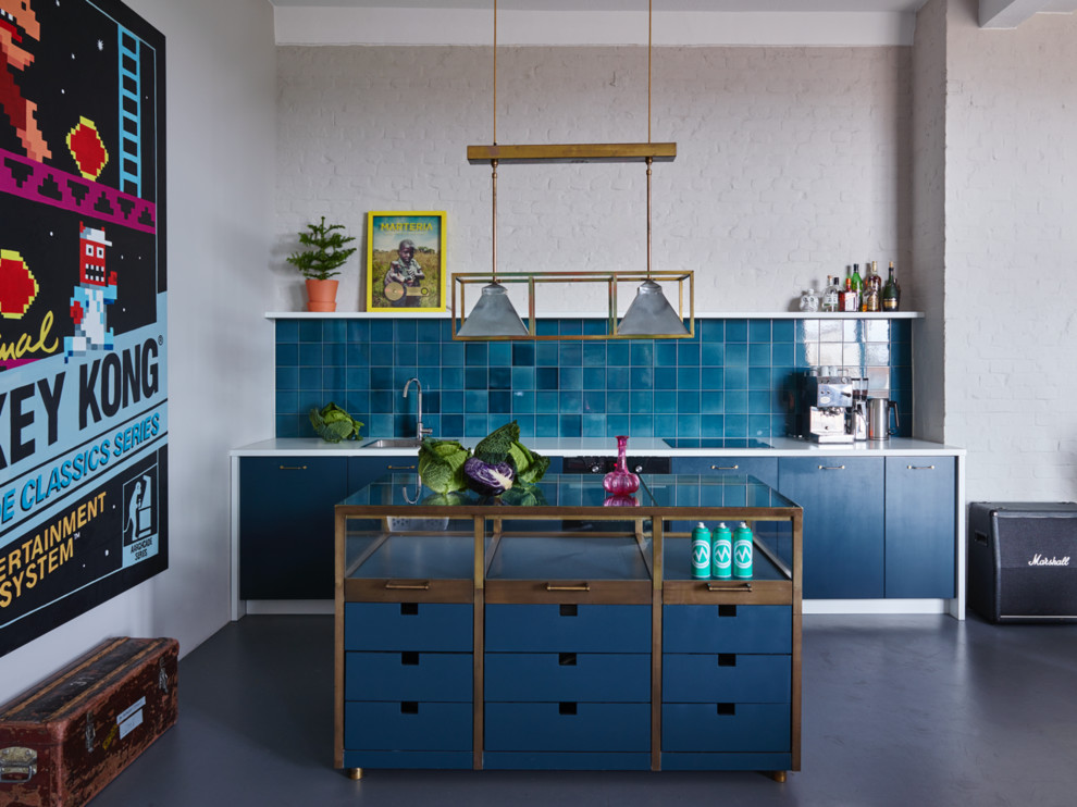 Студия в стиле фьюжн с ярким лимонным холодильником