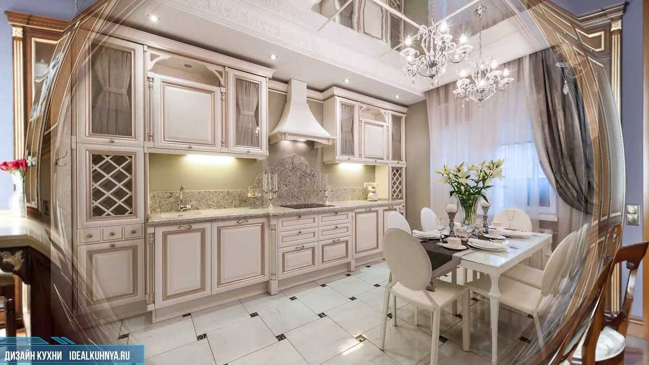 Маленькая кухня-студия прекрасно оформляется в классическом стиле. Палитра будет естественной, пастельной, материал натуральным, освещение равномерным и даже ласковым для глаз.