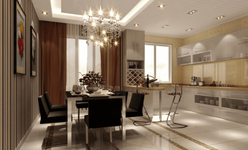 Для оформления обеденной зоны в кухне-гостиной есть несколько готовых решений: