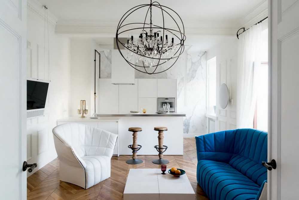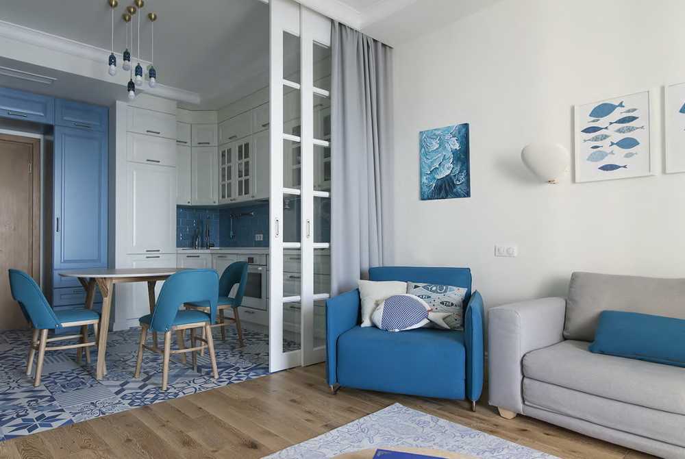 Так как пространство одно, требуется подобрать единый стиль, причём, придётся много внимания уделить зонированию. Что мы имеем: