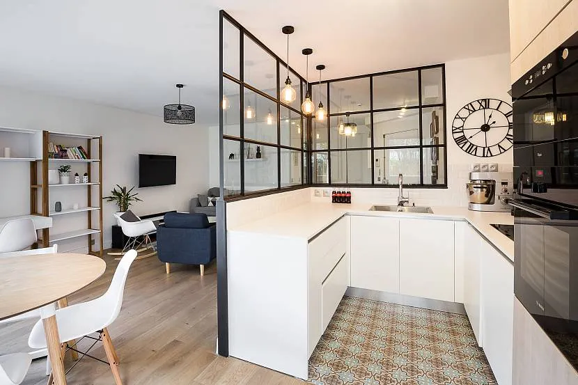 Наличие навесных шкафов – традиционная примета кухонь. Если вы уберете верхние шкафы, то визуально пространство принципиально изменится. Дополните это минимализмом и общими цветовыми решениями, чтобы сделать пространство более гармоничным.