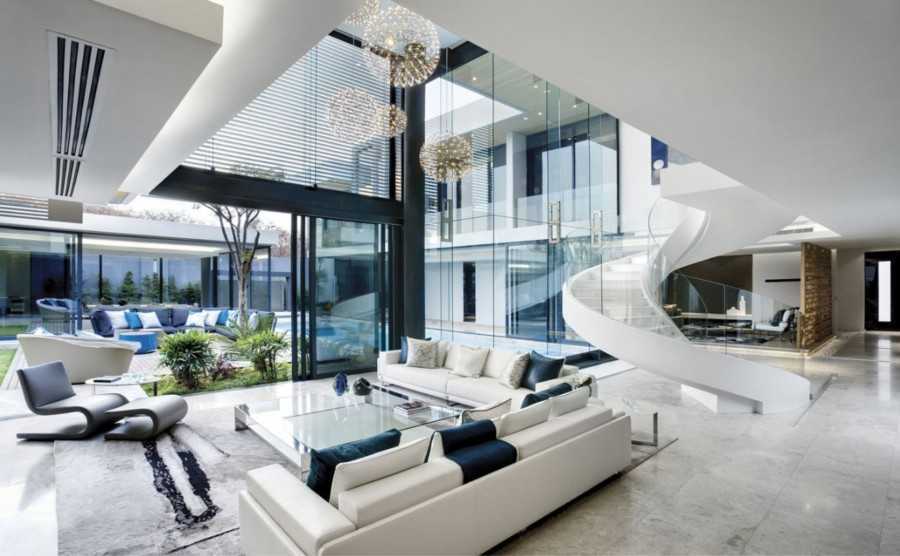 Что касается крыши, то она обязательно должна быть плоской. Как уже говорилось выше, стиль хай-тек предполагает максимальную функциональность. То есть даже такой элемент дома, как крыша может использоваться в качестве места для вечеринок, спортивной площадки или других целей.