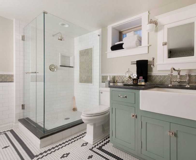Раковина и унитаз могут быть практически любой формы, однако удобнее будет выбирать прямоугольную или овальную. Это практично и удобно в использовании. Сегодня рынок очень богат на необычные модели сантехнического оборудования: раковины в форме чаши, прозрачные модели, черные квадратные унитазы и много чего другого. Цвет можете выбирать под общий стиль, но все же белый остается фаворитом, ведь он создает ощущение чистоты.