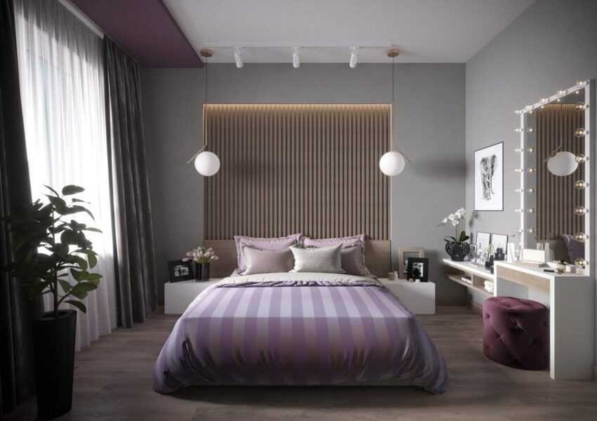 В моде остаётся современный стиль, оформляется просто, без лишнего декора. Основная деталь спальни — кровать. Лучше всего его приобрести с встроенным комодом, чтобы было, куда сложить вещи, это сэкономит площадь помещения.