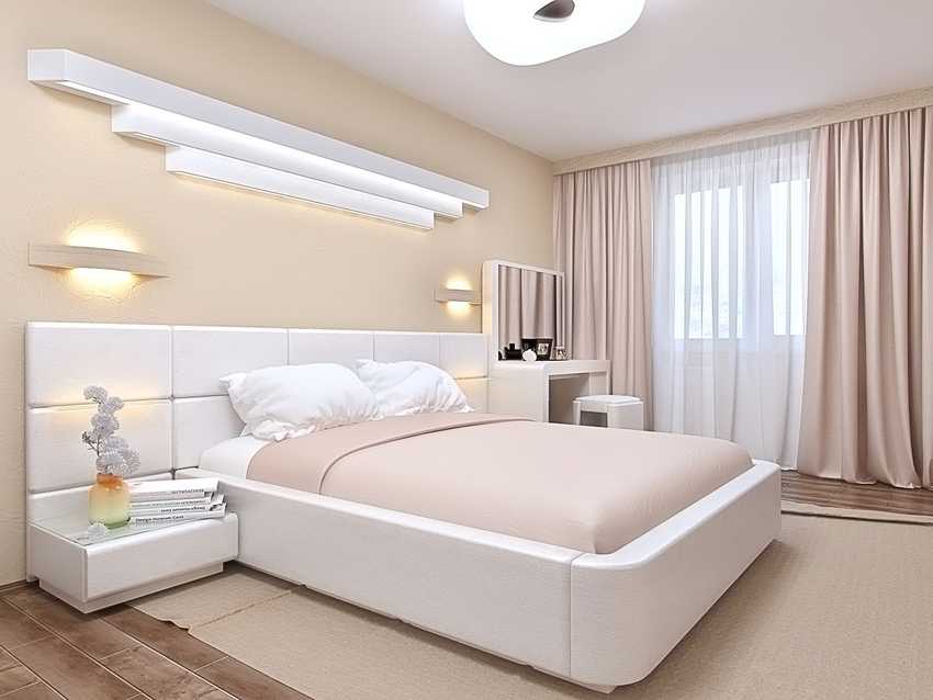 Для этого хорошо подойдет белый цвет, являющийся универсальным вариантом для большинства интерьеров спальни.