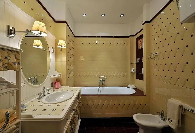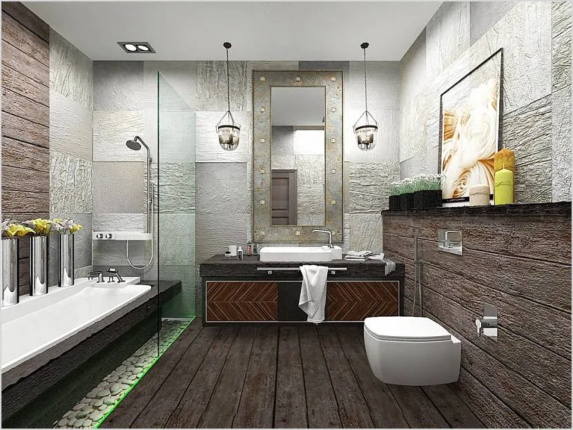 - Отделочные материалы, сантехнику и аксессуары следует подбирать в соответствии с общим стилем, перед покупкой следует изучить фото удачных проектов.