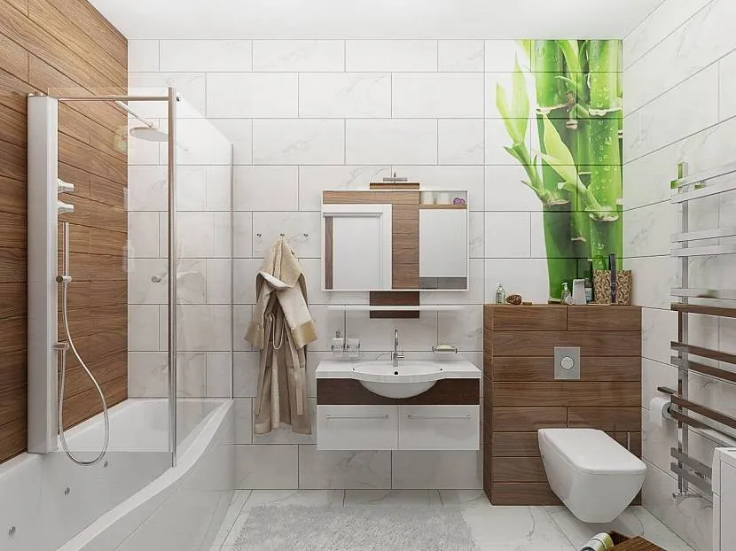 Цвет играет важную роль. Он является составной частью дизайна ванной комнаты в 5 квадратов. Для ванных комнат популярными остаются оттенки мебели: