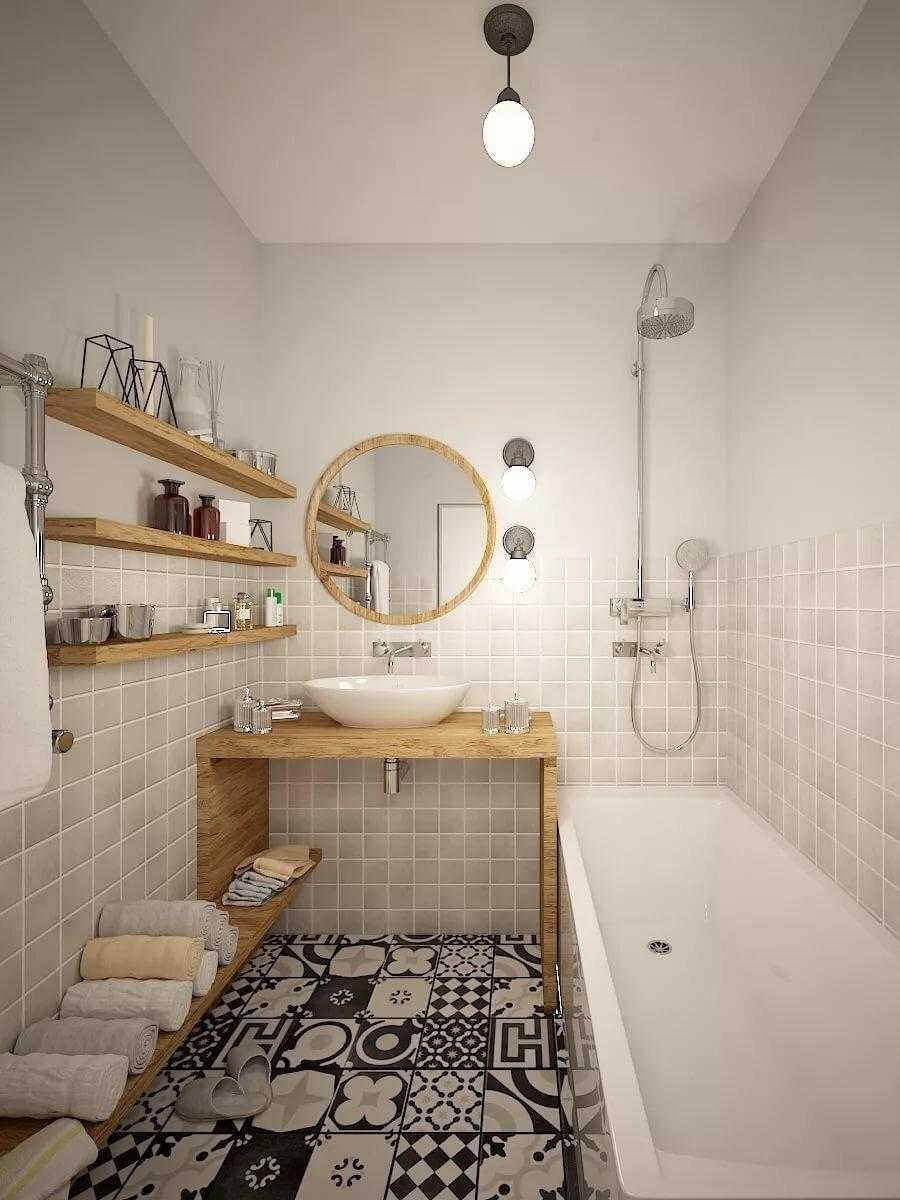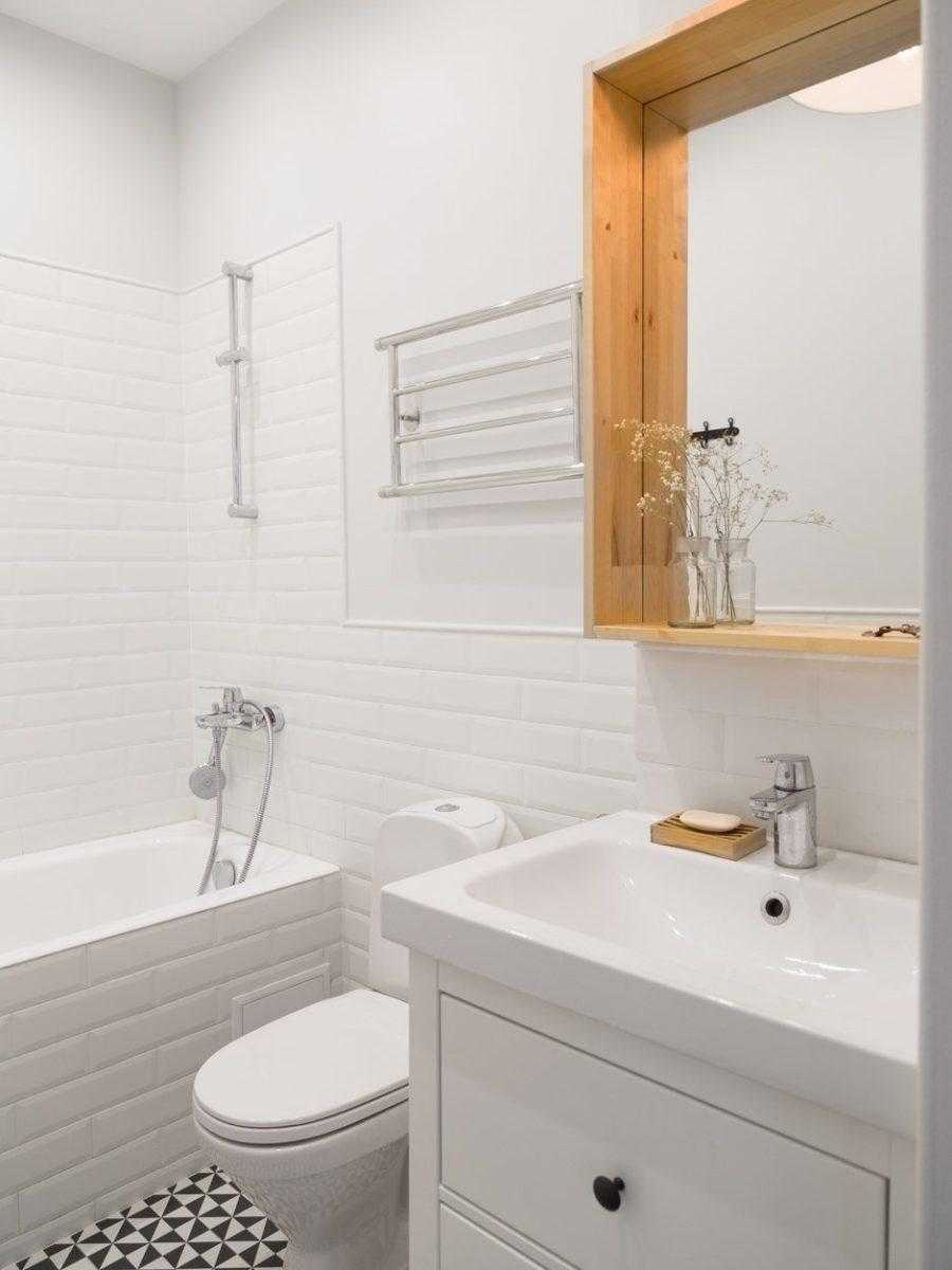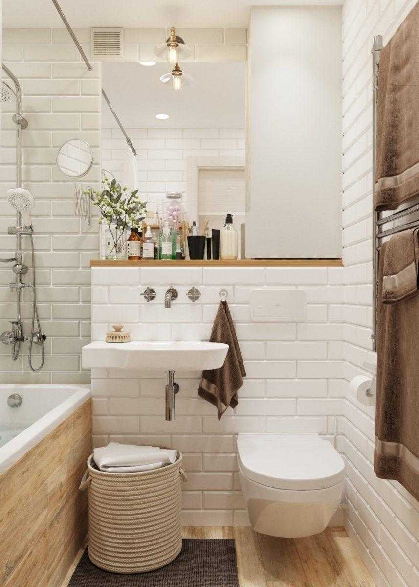 Маленькая ванная комната с ванной кажется плохой идеей. Однако на практике это решение может быть очень функциональным, элегантным и экономить пространство! Лучшее решение – глубокая, белая настенная ванна, облицованная плиткой.