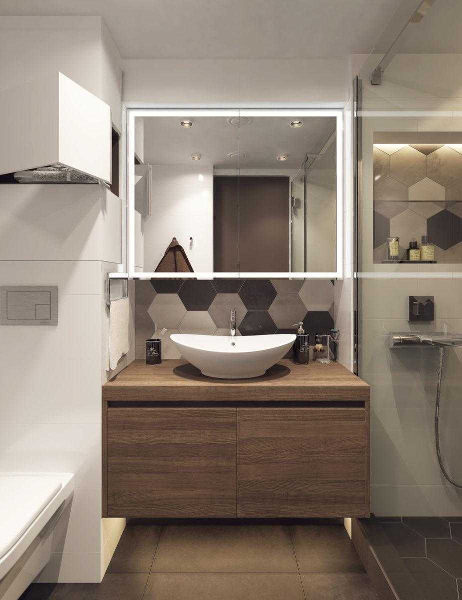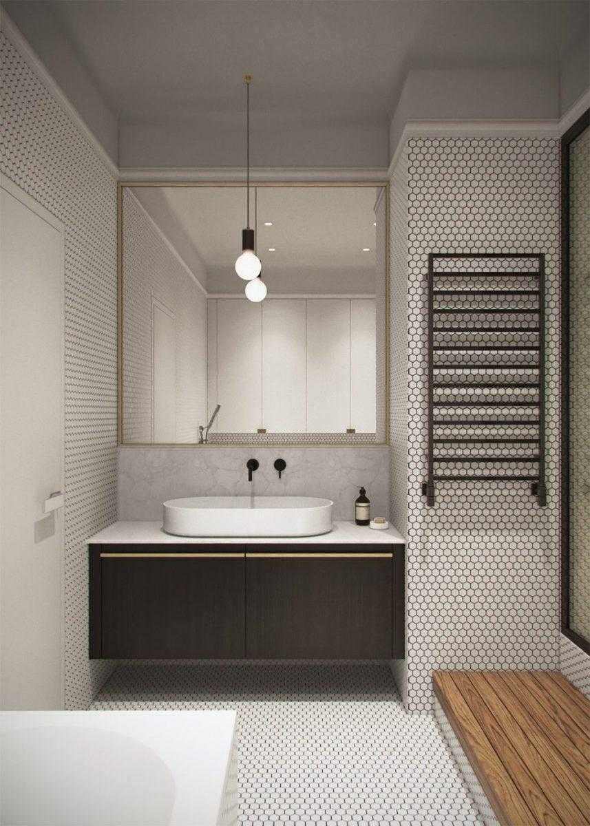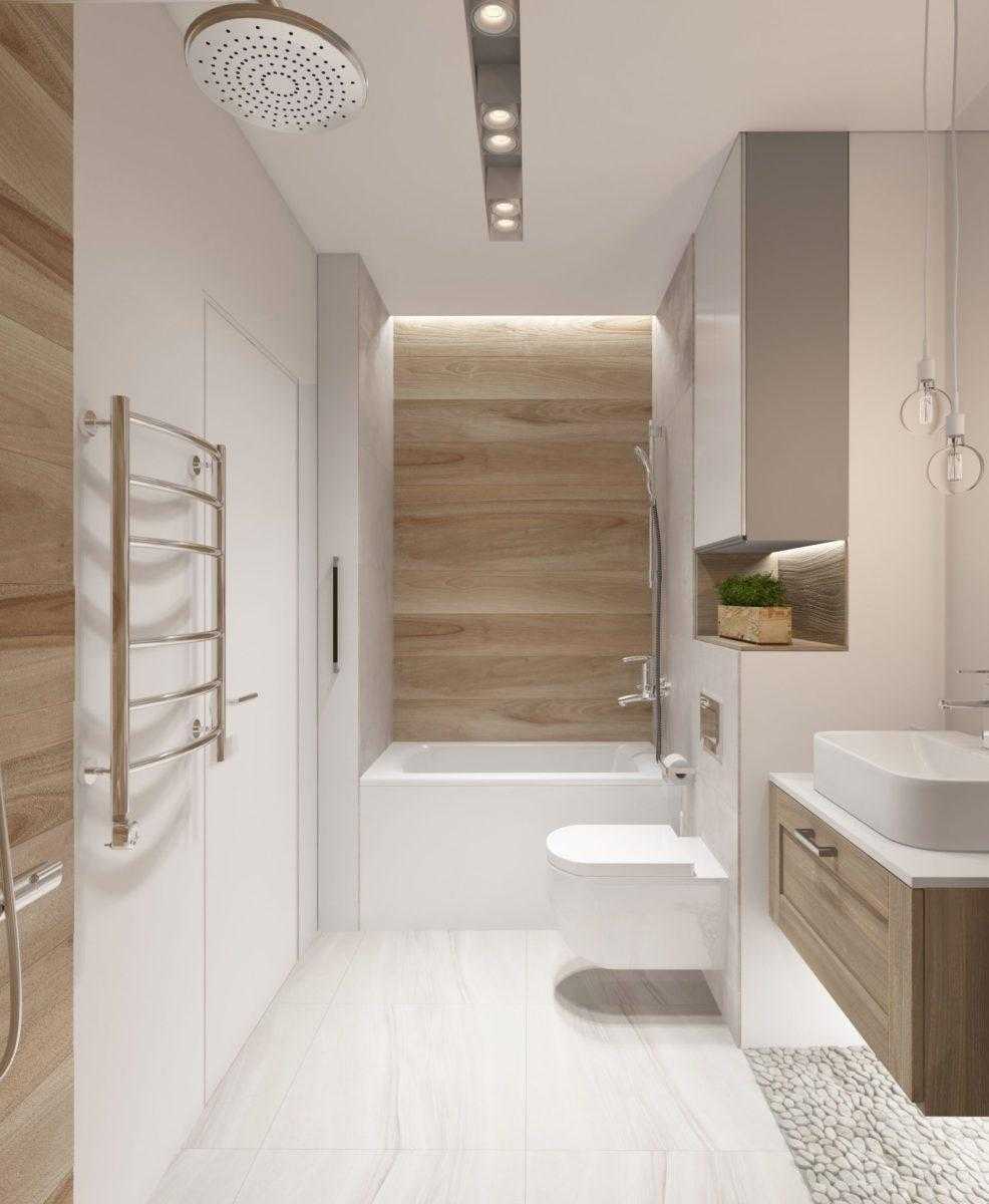 Маленькая ванная комната с ванной кажется плохой идеей. Однако на практике это решение может быть очень функциональным, элегантным и экономить пространство! Лучшее решение – глубокая, белая настенная ванна, облицованная плиткой.