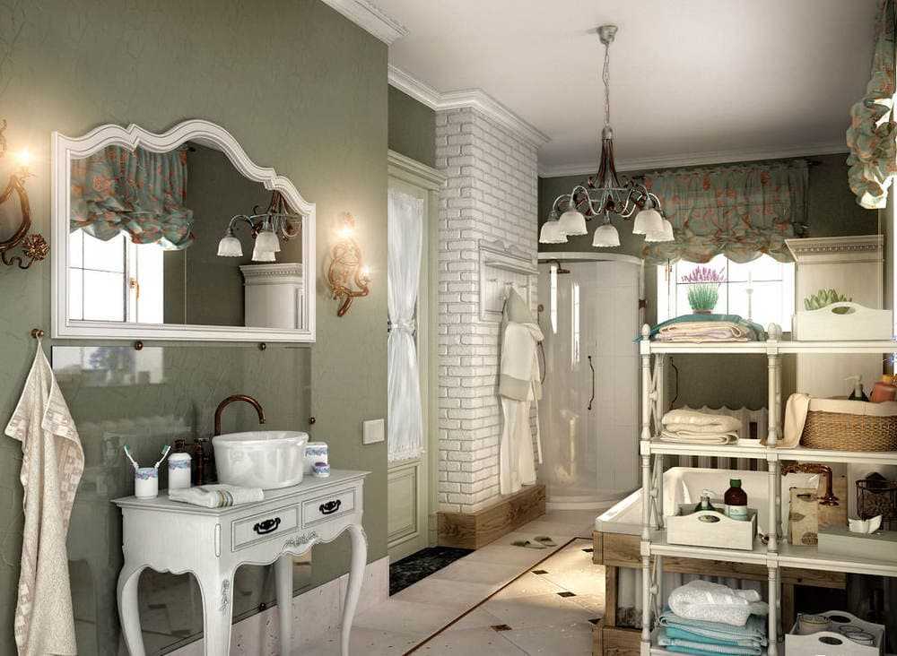 Классика стиля прованс предусматривает наличие естественного освещения ванной комнаты