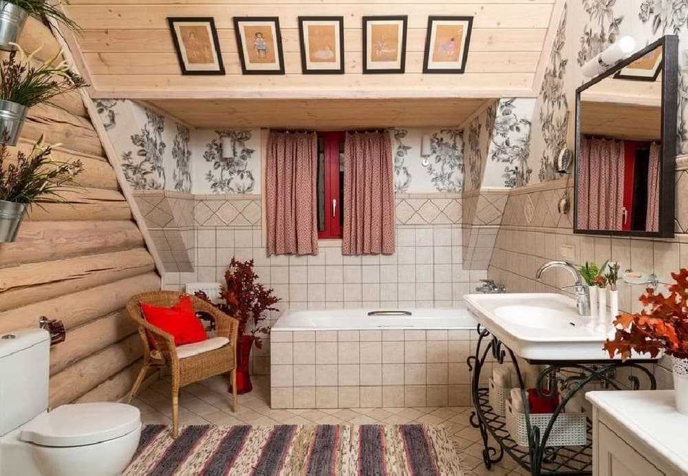 В этой комнате можно встретить всё то, что в иных стилях поставить в ванную никому не придёт в голову: