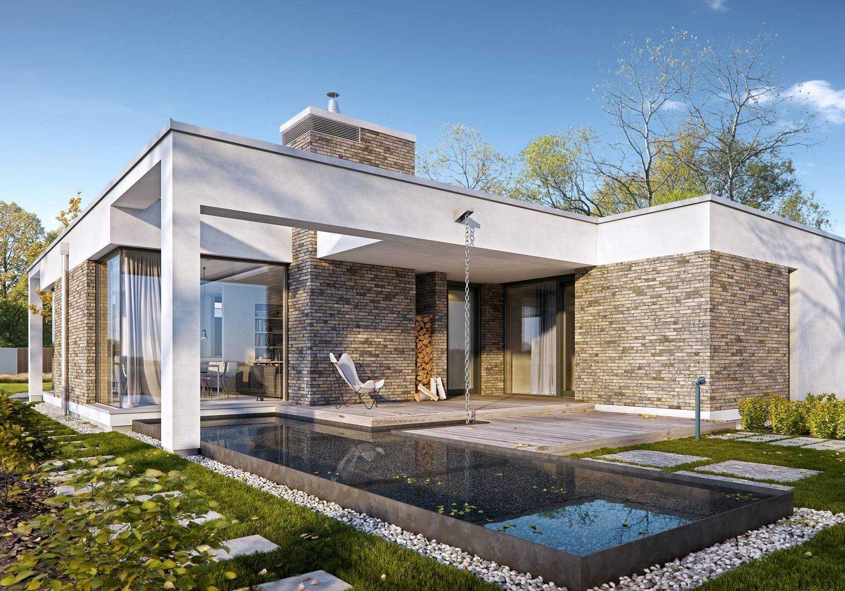 Загородный дом с плоским верхом хорошо смотрится во многих современных стилях. На строениях чаще доминируют ровные линии, однако плавные грани тоже не потеряли актуальность и даже начинают «отвоевывать» позиции. Возведение домов с прямоугольными формами — это не только мода на внешнюю простоту оформления, но и способ снизить бюджет постройки до 2 раз. Для большинства частных строений с плоской крышей характерны высокие окна, раздвижные варианты дверей, панельные элементы, большое количество зеркал и осветительных приборов. У современных стилей есть много общего, как и некоторых, присущих только конкретному направлению, особенностей. Минимализм, к примеру, создает ощущение легкости, ценится за простоту оформления. Биотек — дорогой, сложный в исполнении вариант. Хай-тек добавляет к ровным линиям несколько креативных задумок. Конструктивизм отличается строгостью и стремлением к доскональности. Лофт выделяется современной колоритностью и различными сочетаниями.