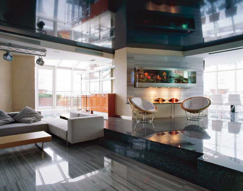 Декор. Прагматичность стиля не отвергает использование в дизайне и декоративных элементов. Для “оживления” интерьера используются зеркала, аквариумы, вазы и торшеры — но они не должны выбиваться из футуристичности стиля.