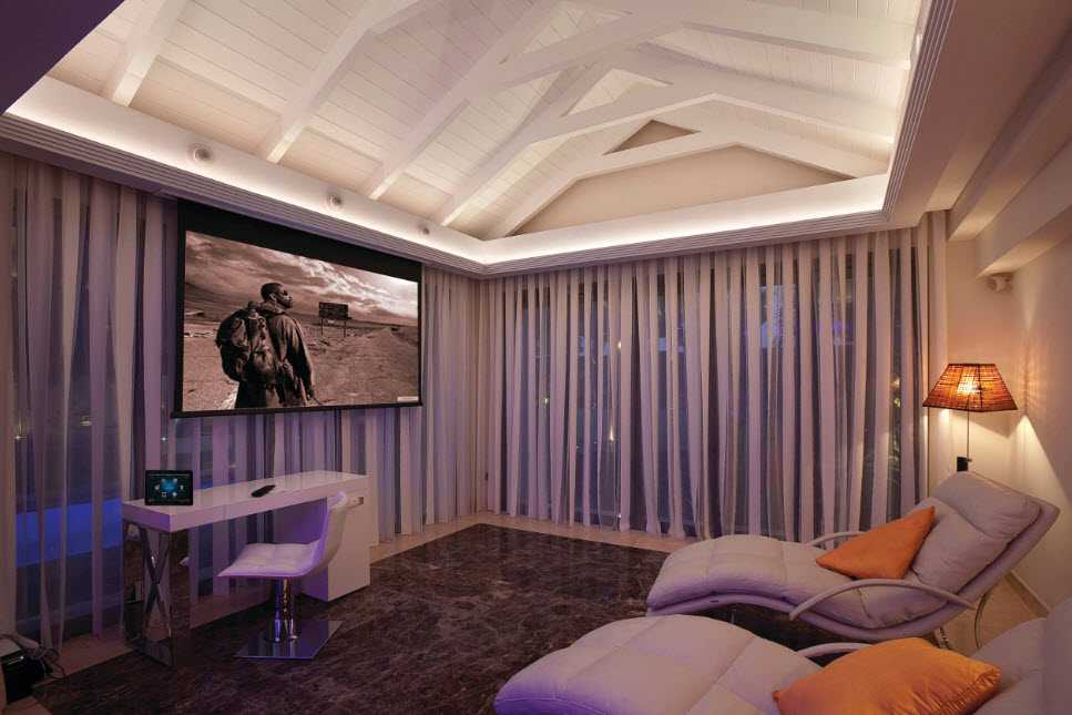 Техника. Главное отличие стиля — это гармоничное сочетание в интерьере самых последних технических новинок: световые приборы с датчиками движения, тач-покрытия, встроенные телевизоры и элементы режима безопасности (скрытые камеры, сигнализация, сенсоры для дверей и окон). Количество техники неограничено, но вся аппаратура должна “вливаться” в интерьер и нести практическую пользу.