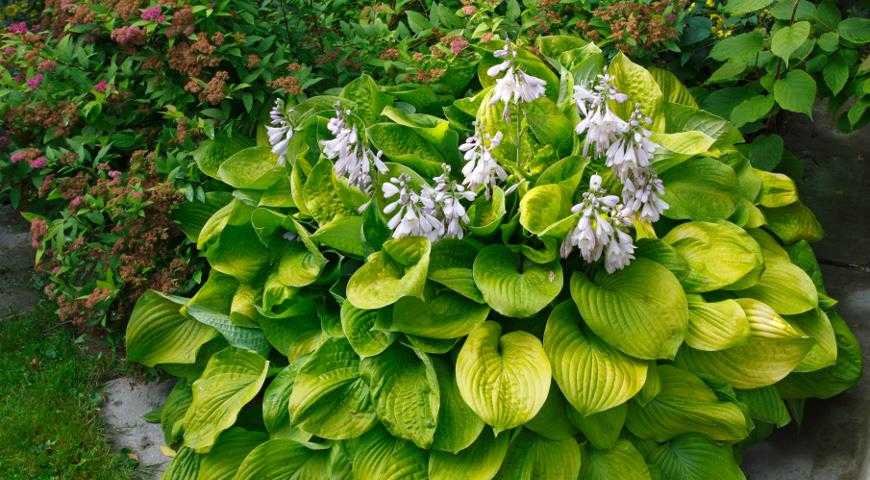 Специалисты не рекомендуют сажать хосты в непосредственной близости от цветущих деревьев и кустарников: осыпающиеся с них лепестки попадают на листья хост, скапливаются там и могут приводить к загниванию листовых пластин.