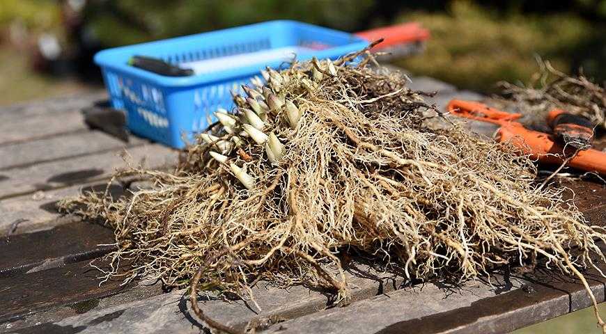 Если высадку выполняют посредством деления кустарника, то с каждой части убирают сухую листву и подпорченные корневища.