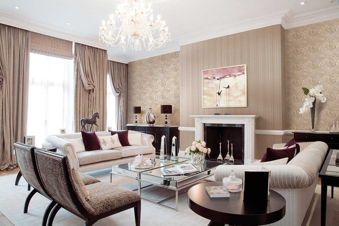 Сочетание светлых обоев в интерьере гостиной
