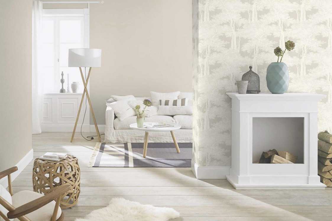 Обои с перламутровым эффектом. Обои с разноцветным «блеском, тем не менее являющиеся белыми. Они могут использоваться как декоративные вставки или на тех участках стен, которые необходимо выделить, например, стена в ТВ-зоне или там, где расположен камин.