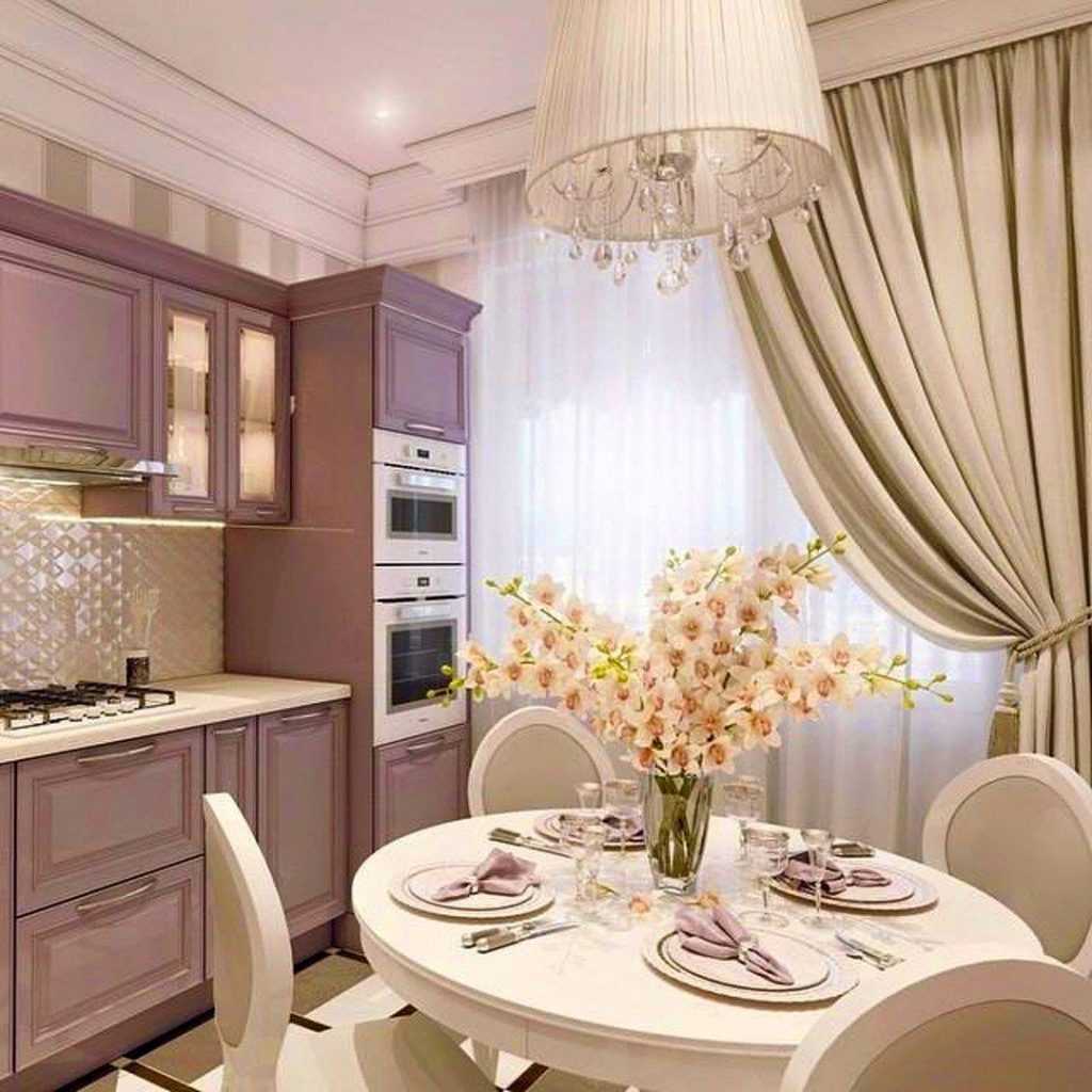 6. Лиловые и пудровые оттенки. Идеальным решением станет стиль «прованс» или шебби-шик. Отлично будут смотреться глянцевые поверхности и сочетание с белым цветом.