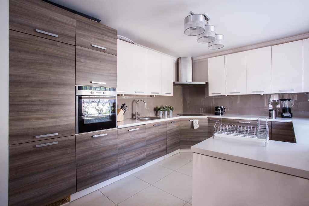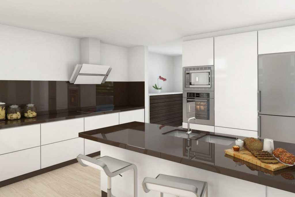 Кухня белая с коричневым – отличное решение. А если еще укомплектовать ее бытовой техникой, она станет идеальной для современных хозяек, которые не могут себе позволить уделять много времени процессу готовки или уборки. Вот такая она бело-коричневая кухня.
