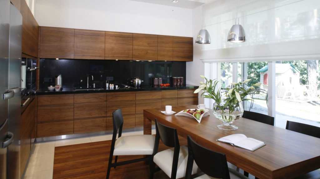 Если вы не определитесь с ними по цветам стен, то выбирайте в них дополнения. Современные кухни (и интерьеры в целом) – это выразительные цвета или контрасты. Темная или коричневая мебель для кухни может быть очень разной.