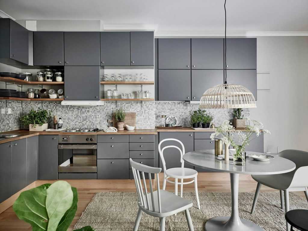 Серо-оливковый цвет сейчас в тренде. Это сложный и неоднозначный вариант, который хорошо дополняет стиль хай-тек, минимализм, а также кухни в стиле лофт. Серо-оливковый может смотреться немного мрачно в малометражных помещениях, а также дизайнеры не рекомендуют сочетать его с такими же темными или сложными составными тонами.