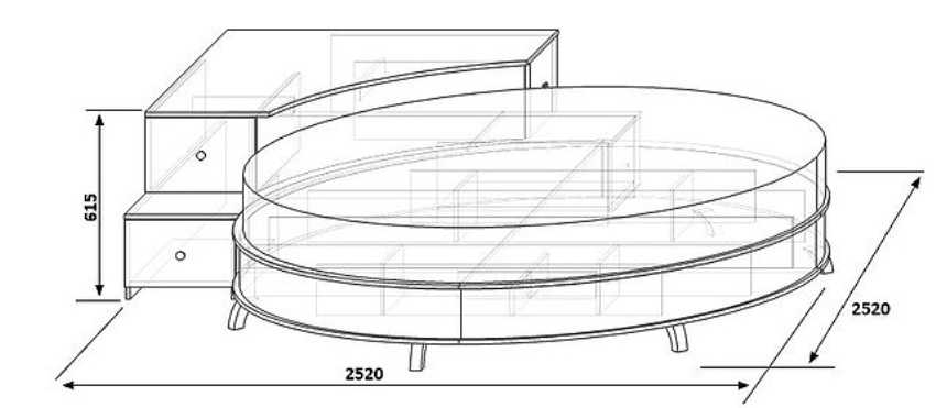 - поворотным механизмом, позволяющим трансформировать кровать круглой формы в диван с прямоугольным сидением;