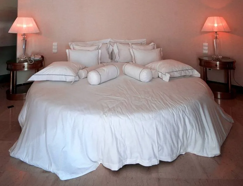 Несмотря на то, что у вас будет круглый матрац, постельное белье вы можете использовать квадратное. Это добавит в интерьер шика и шарма.
