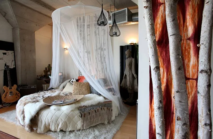 Круглая кровать с балдахином в этно-стилеИсточник aviarydecor.com
