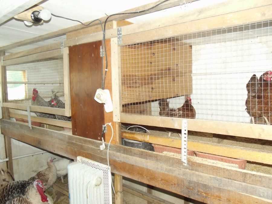 Если финансы не позволяют выстроить отдельный птичник — его выполняют в виде пристройки к основному дому. Вход в такое помещение можно сделать прямо изнутри. Калориферы или радиаторы подключают к домашней газовой, водонагревательной (котельная) или электрической сетям. Необходимо поддерживать температуру в 15-25 градусов.