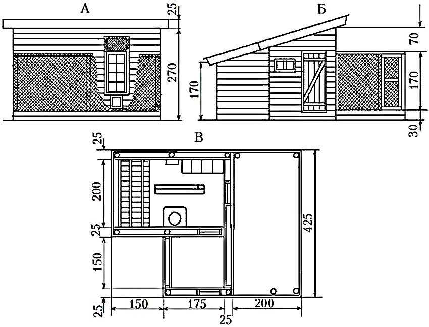 Выбрав место расположения, подбирают оптимальные размеры и материалы для птичника, составляют проект. Его можно выполнить в виде простого чертежа с указанием всех размеров, что облегчит строительство.