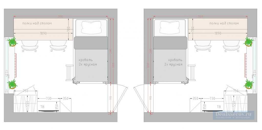 Бесспорный плюс планировки 3 на 3 (или даже 2,8 на 3,3 метра) – это правильная, почти квадратная форма. Варианты расстановки мебели при такой площади можно посмотреть в фотоподборке ниже.
