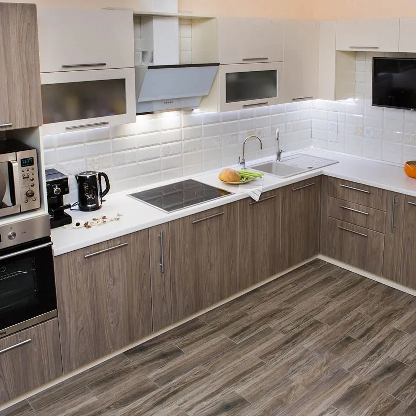 Цена сильно растёт при использовании дорогой выдвижной фурнитуры с доводчиками, типов фасадов и столешницы. Современные красивые кухни обойдутся уже от 700$ за метр. Я, конечно, советую делать на заказ. Монолитный внешний вид без зазоров возможен только при изготовлении под конкретные размеры.
