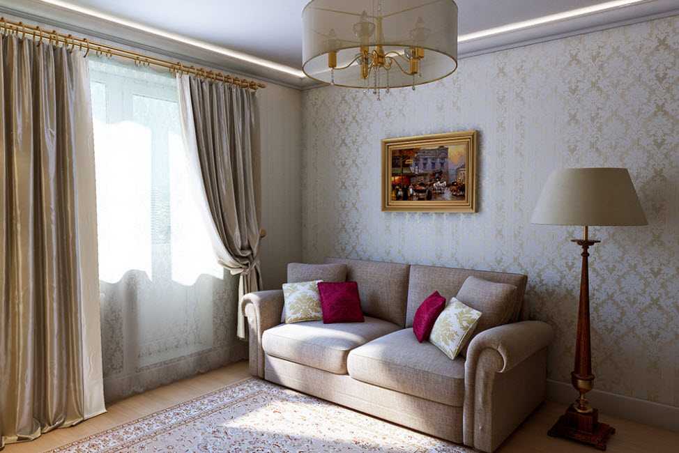 Хотите провести отделку стен дорогостоящим материалом, способным превратить гостиную в роскошную комнату, демонстрирующую финансовое благополучие? Тогда нужно покупать текстильные обои, изготовленные на основе шелка или атласа, бархата или льна. Текстильные обои – это идеальное решение для гостиной, выполненной в классическом стиле. Конечно же, цена на материал высокая, но качество полностью ее оправдывает. Недостаток всего один, за их поверхность сложно ухаживать, ведь такие обои притягивают влагу и пыль.
