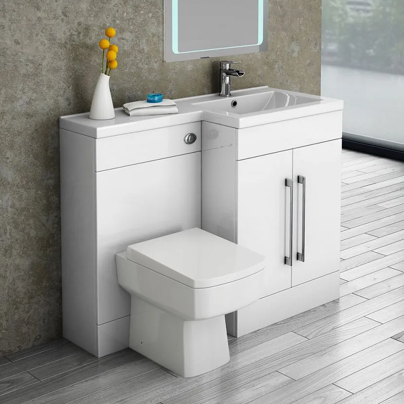 В современном дизайне получают распространение комбоунитазы. Это совмещение унитаза с раковиной на бачке. Раковина служит крышкой сливного бачка. Это очень выгодно для хозяев небольших туалетов, так как позволяет сэкономить пространство. С другой стороны, происходит заметная экономия воды (до 25%) за счет того, что использованная для мытья рук вода попадает в бачок и используется для смыва.